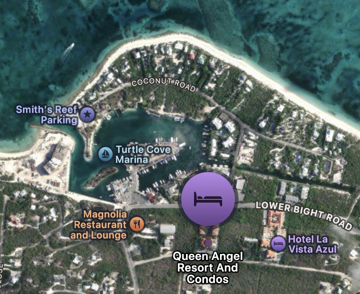 Queen Angel is a resort style condominium complex in the heart of Turtle Cove, practically across the street from the marina.