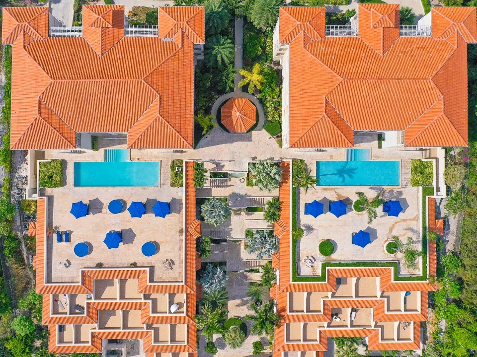 La Vista Azul is a large, multi-story hotel rising up the hill above Turtle Cove Marina, offering 2 pools and stunning views of the coast.